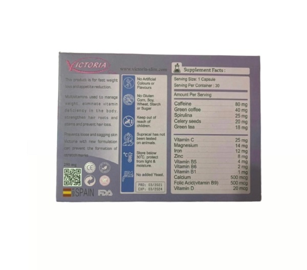 - برای استعلام اصل بودن قرص به آدرس: Registration – Victoria Slim (victoria-slim.com) مراجعه کنید.