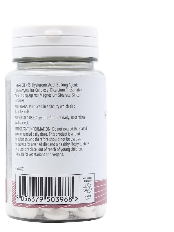 - مقدار هیالورونیک اسید در هر قرص استفاده 150 میلی گرم می باشد که منشا گیاهی دارد.